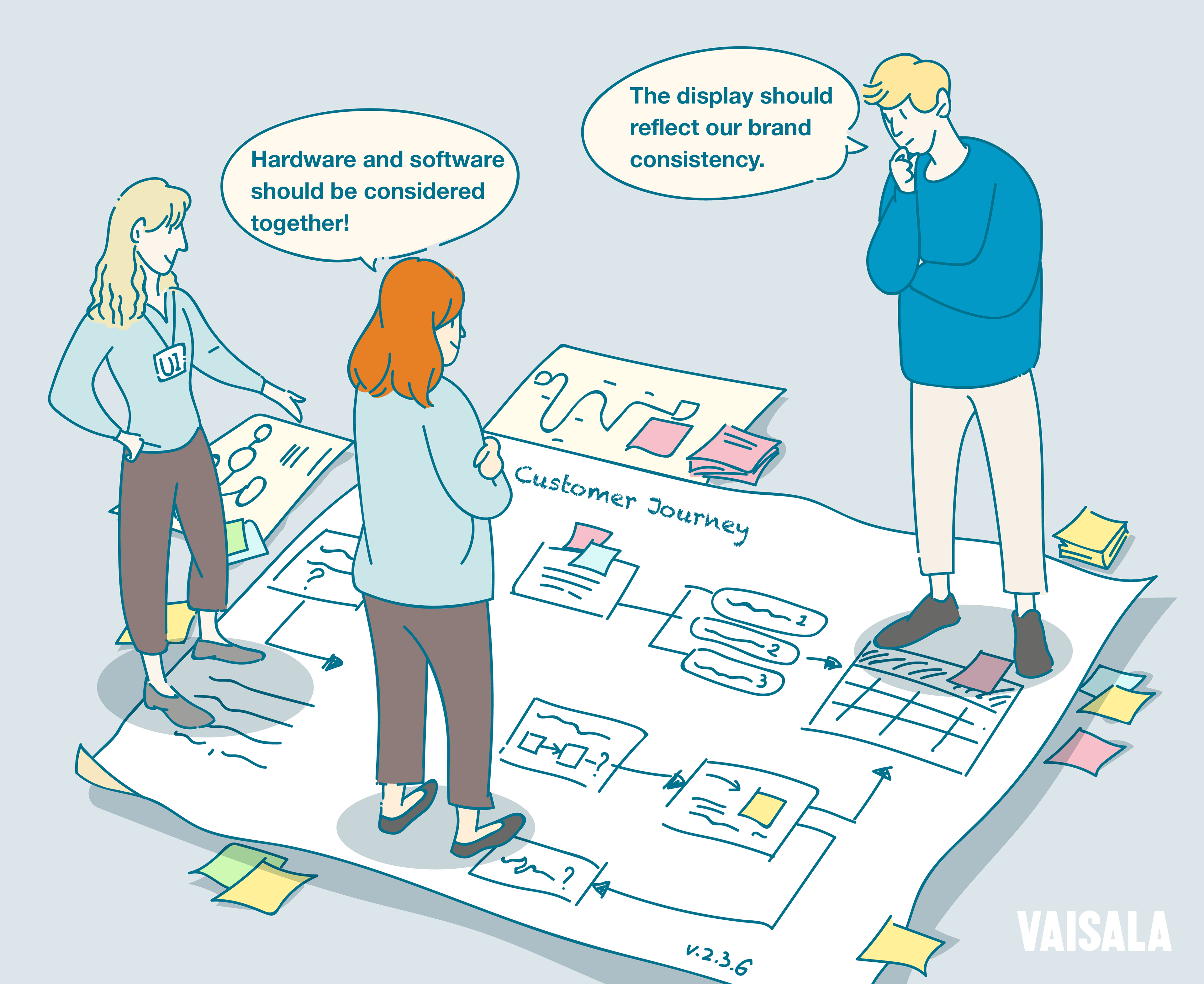 I started by understanding the main users, which were the product managers, the UX team and the mechanical engineers. Besides working closely with the UX team, I conducted design games with 3 product managers and interviews with 4 mechanical engineers as well. The aim of the games with product managers were defining the segmentation of typical Vaisala products, which would be shown as good examples in the guideline. Interviews with engineers were aimed to find out what information they need in the guideline and which would be the proper way to demonstrate.